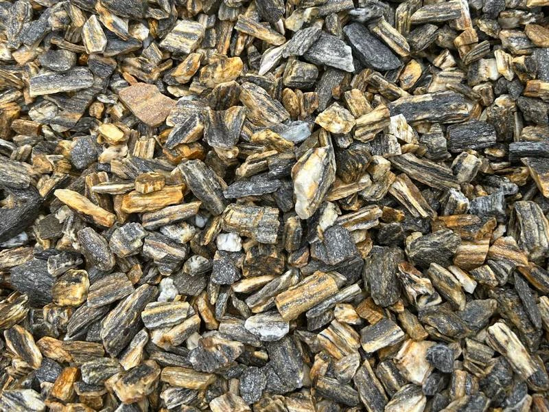Kora kamienna to nieregularnie łupany gnejs o charakterystycznej, płaskiej formie przypominającej korę drzewa. To jeden z najpopularniejszych materiałów do ściółkowania ogrodów — trwalszy i bardziej funkcjonalny niż kora sosnowa.
